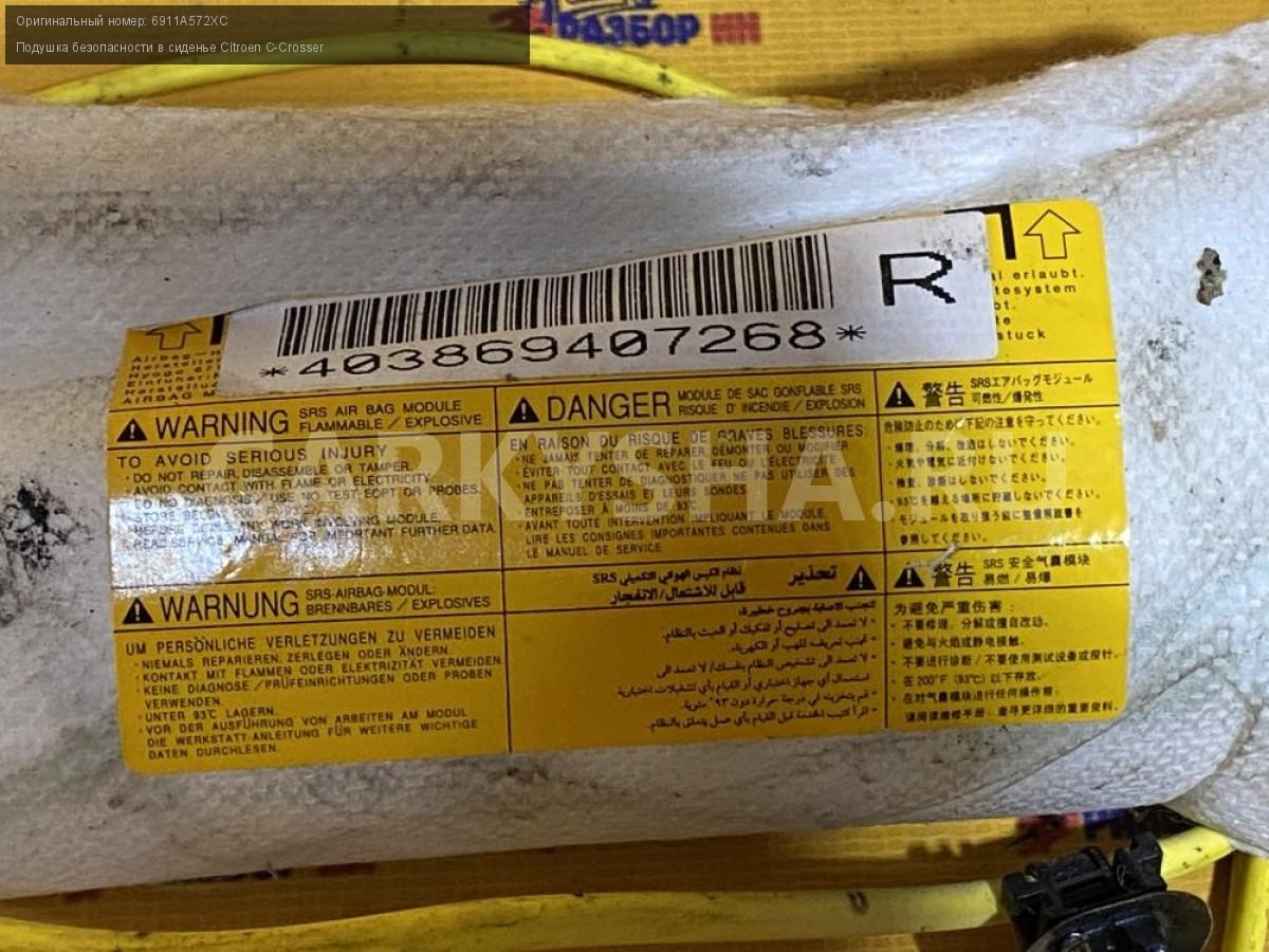 Примечание:Подушка безопасности в сиденье правая Citroen C-Crosser EP